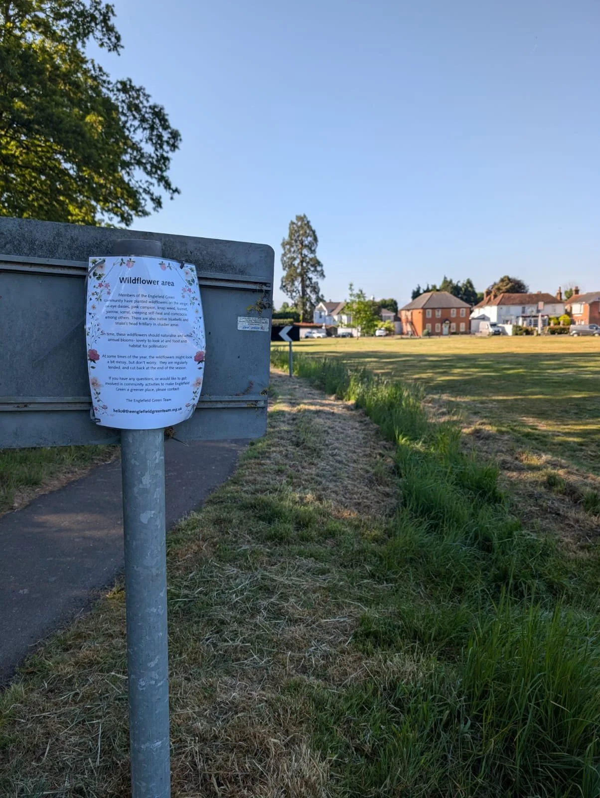In Feb 2024 we started a project to become a Bee Friendly Village. Becoming a Bee Friendly Village was a buzzing achievement for Englefield Green, placing us among just nine communities nationwide to earn this award. Our journey began with planting a wildflower corridor alongside our village green, creating safe havens bursting with nectar and pollen, vital fuel sources for bees and other pollinators. Supporting these tiny superheroes is absolutely crucial as they play a starring role in pollinating crops and wild plants, ensuring food security and vibrant ecosystems. Without them, flowers wouldn’t bloom, fruits wouldn’t set, and our natural world would lose its colourful heartbeat. By embracing bee-friendly practices, we’re not only protecting these essential creatures but also nurturing our community’s connection to nature and well-being.